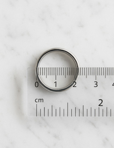 Si tienes un anillo que uses en el dedo donde quieres llevar el de Ámbar, sólo tienes que medir su diámetro interior. Coloca una regla o metro desde el número 0 y cuenta los milímetros que mide el aro interiormente. En la imagen de ejemplo puedes ver un anillo que mide 20mm de diámetro interior, lo que corresponde a la talla 20mm en nuestra página web.