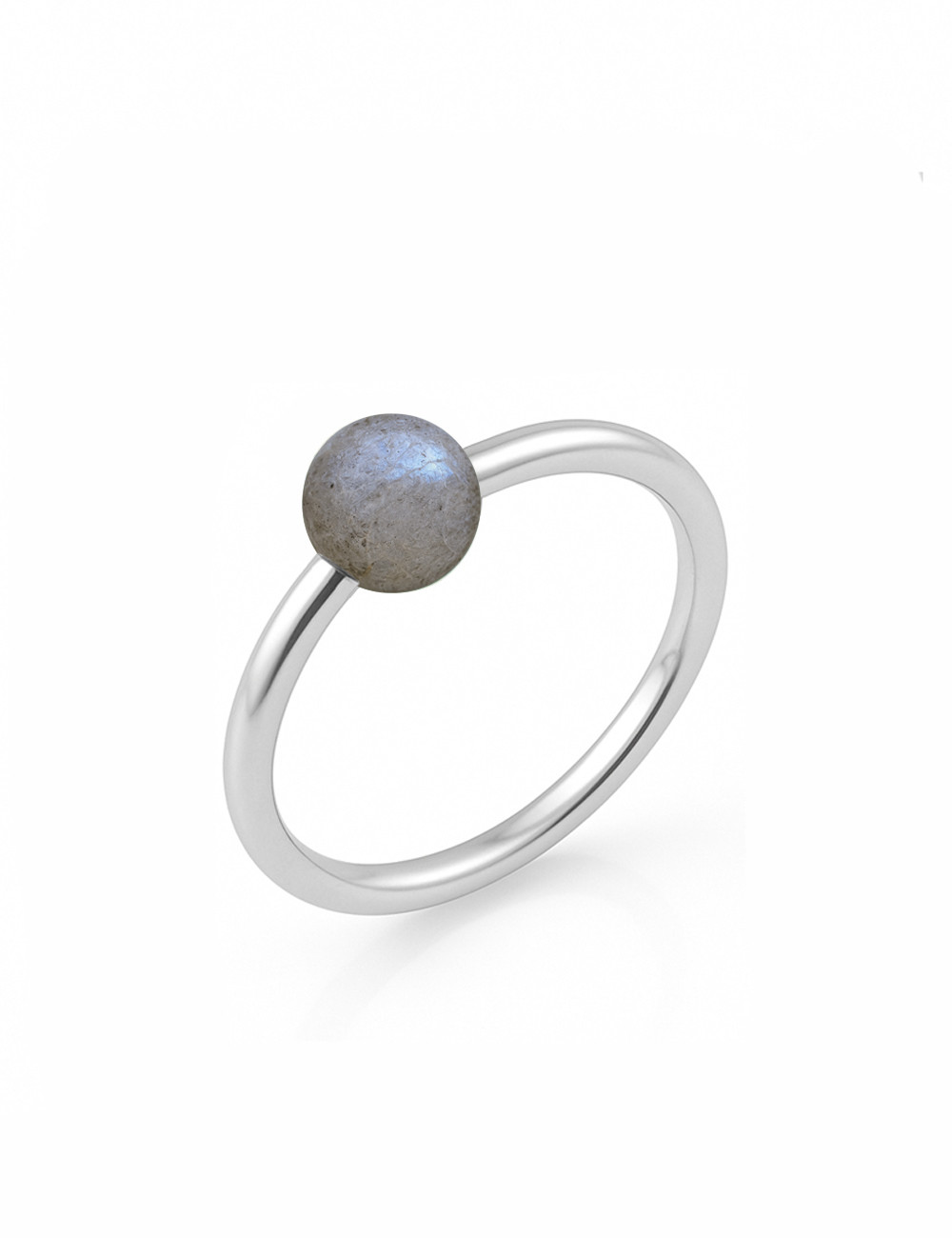 La bola de Labradorita tiene un tamaño de 6 milímetros. El grosor del aro de plata es de 1.8 milímetros.