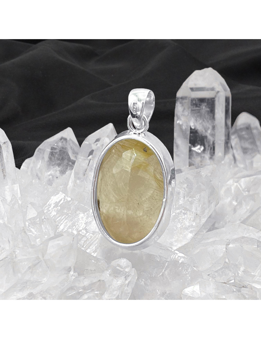 Colgante exclusivo de Cuarzo rutilado natural tallado y plata de primera ley.