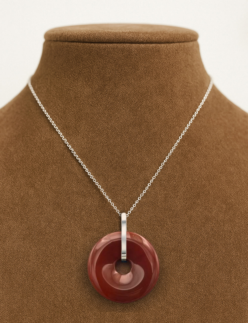 Colgante de Ágata Cornalina natural en forma de dónut. Colgante elaborado en nuestro Taller de Minerales