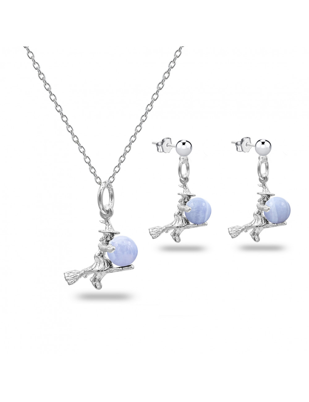 Conjunto de Brujita con Ágata Calcedonia natural y plata de primera ley.