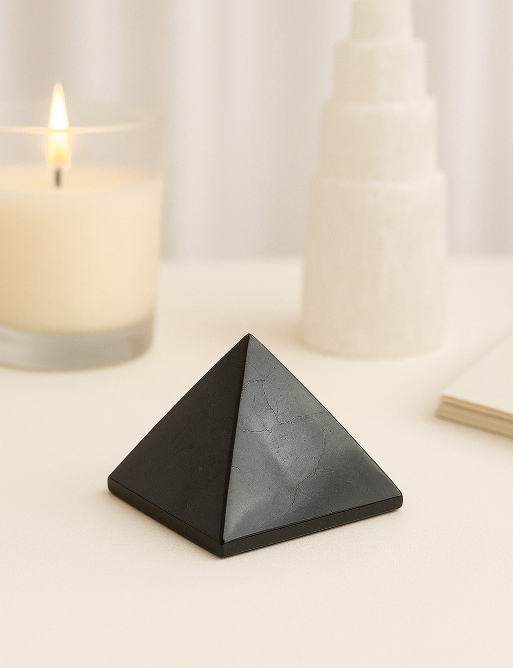 Pirámide de Shungit 3 x 3 cm acabado brillo
