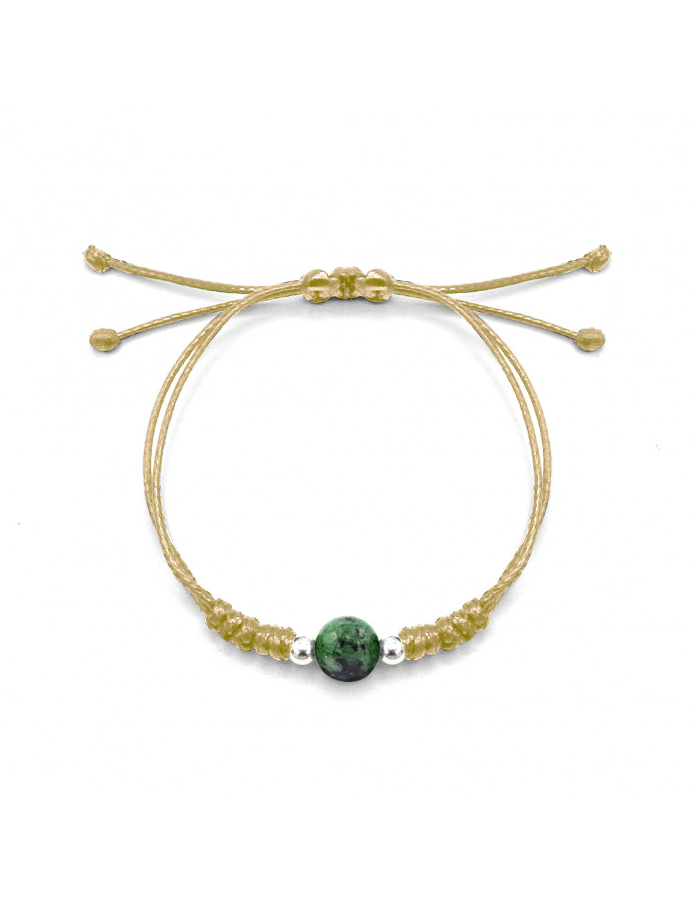 Pulsera elaborada con hilo elástico de alta resistencia, cuentas de plata de primera ley y Zoisita natural.