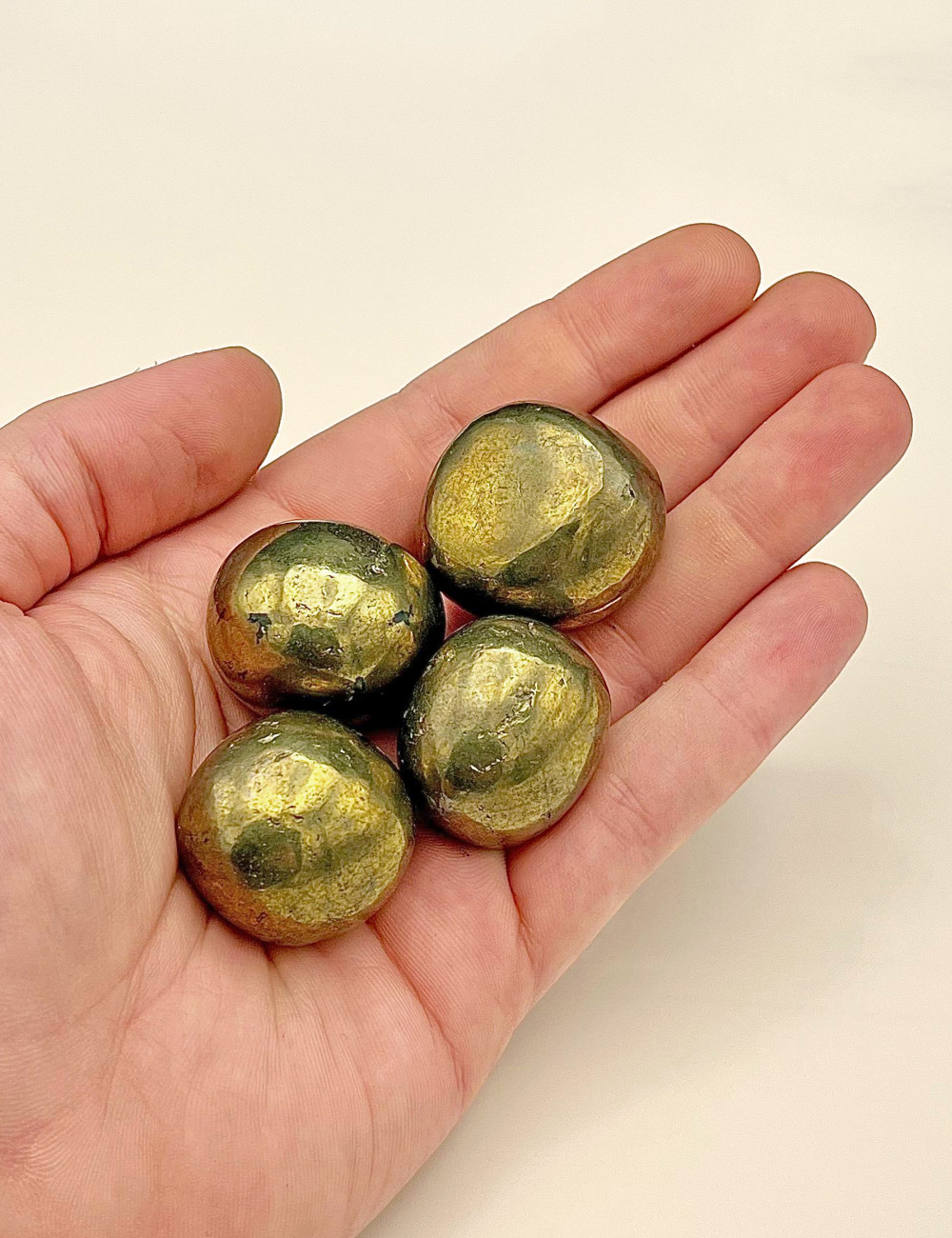 Debido a la naturaleza de los minerales, cada rodado de Calcita Dorada es único. Las variaciones en el color, las vetas y los patrones son características naturales que hacen que cada rodado sea especial y diferente. La imagen es una representación general, pero el rodado de Calcita Dorada que recibirá tendrá su propio y exclusivo diseño.