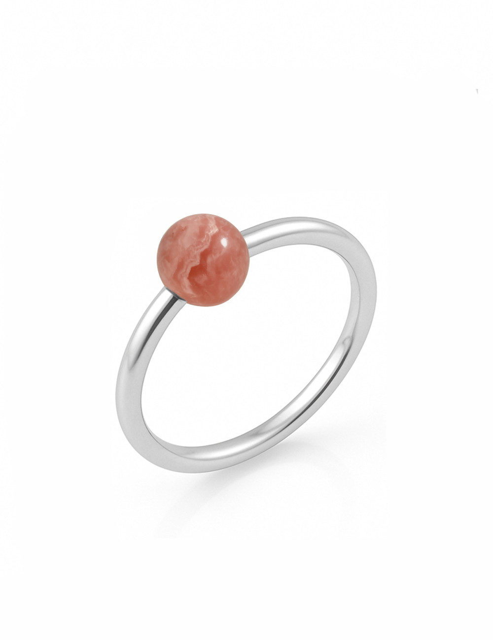 La bola de Rodocrosita tiene un tamaño de 6 milímetros. El grosor del aro de plata es de 1.8 milímetros.